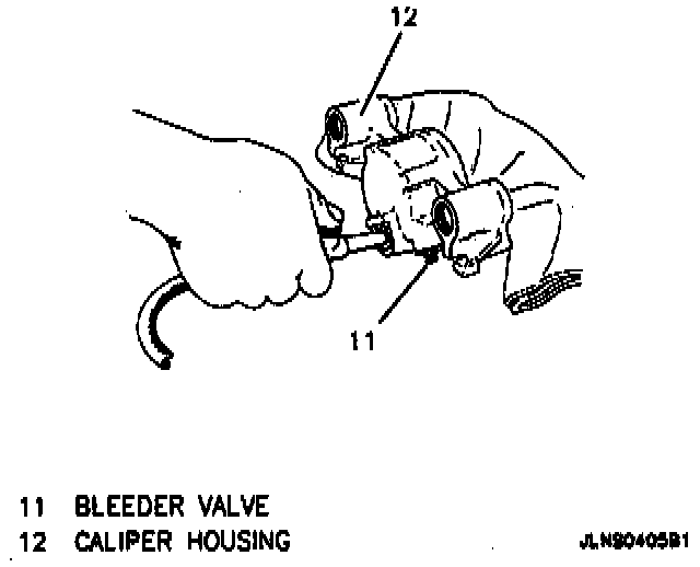 1. Bleeder valve and bleeder valve cap into caliper. Tighten Bleeder valve to 13 Nm (115 inch lbs.).