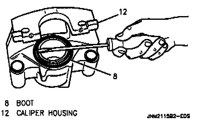 4. Boot from caliper housing bore. Be careful not to scratch housing bore.