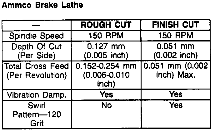 Following are examples of two recommended procedures that achieve adequate results using two different off vehicle drum and disc brake lathes. If any other lathe is used, follow that manufacturers instructions and recommendations.