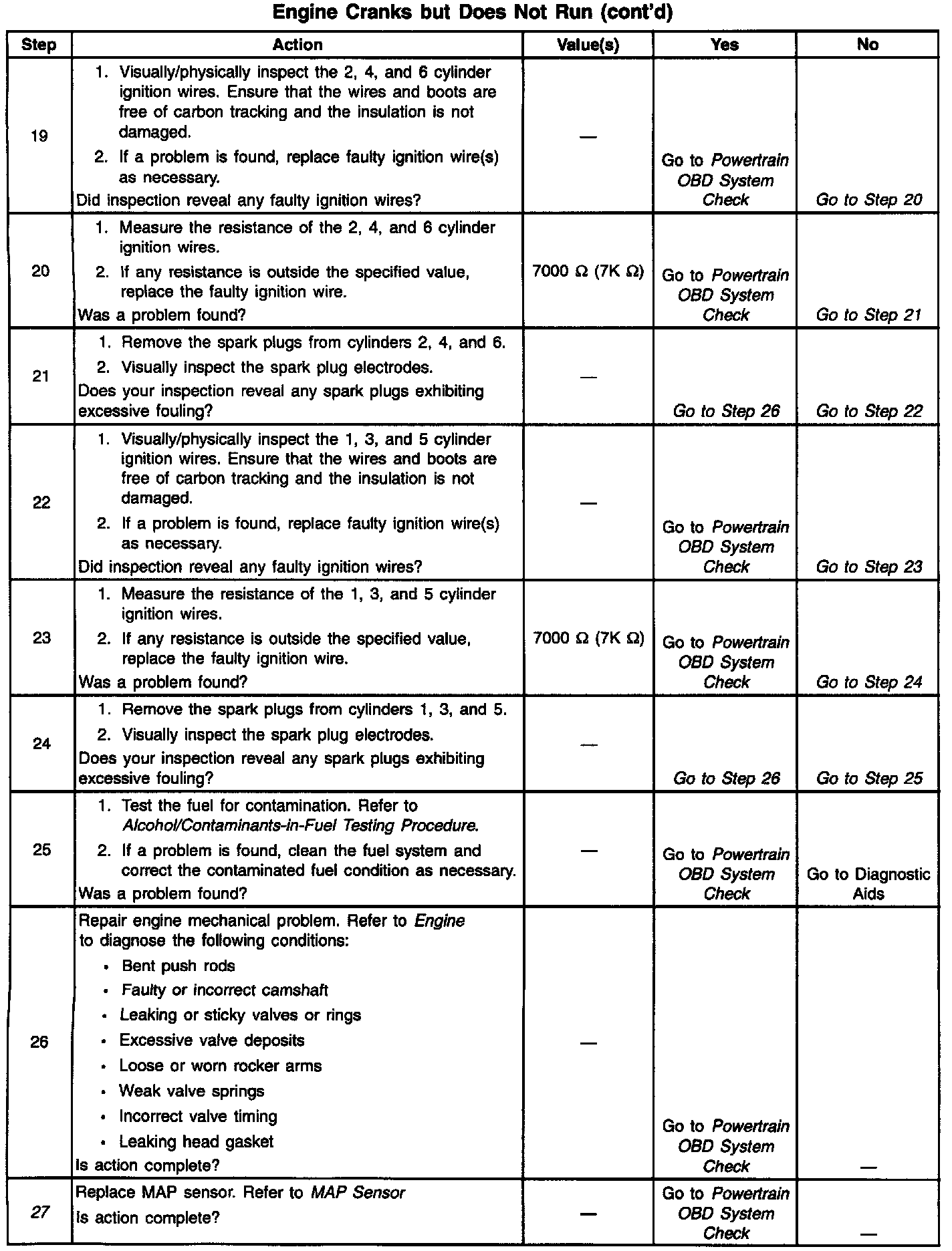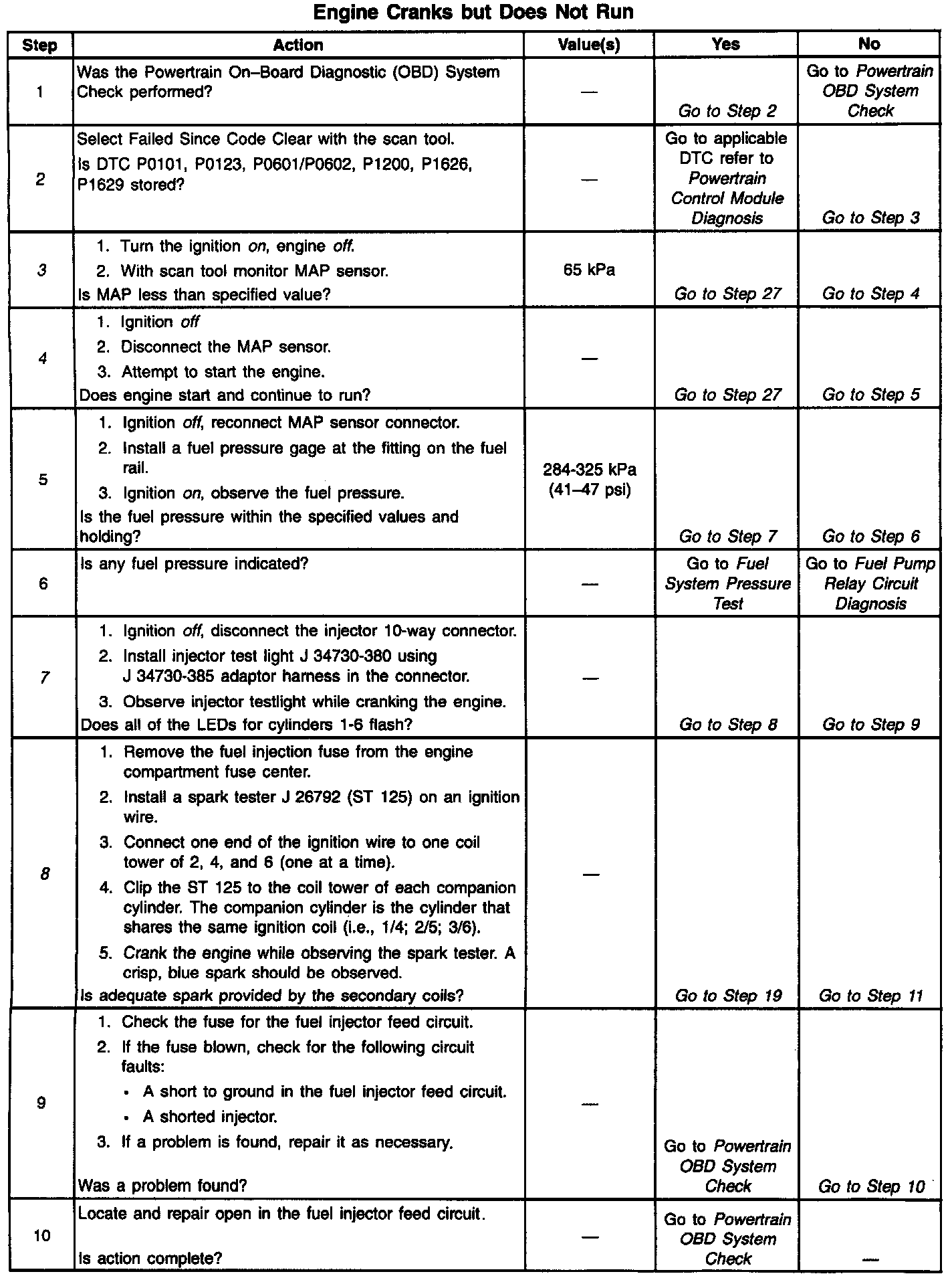 The numbers below refer to the step numbers on the Diagnostic Table.
