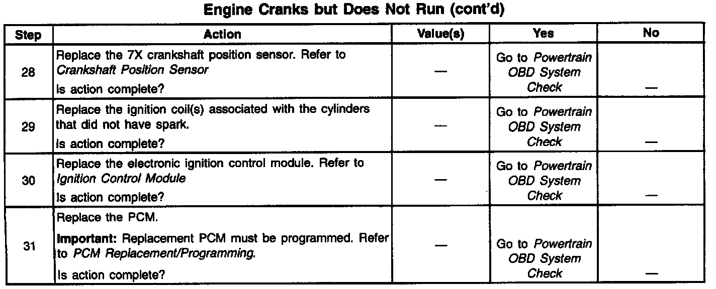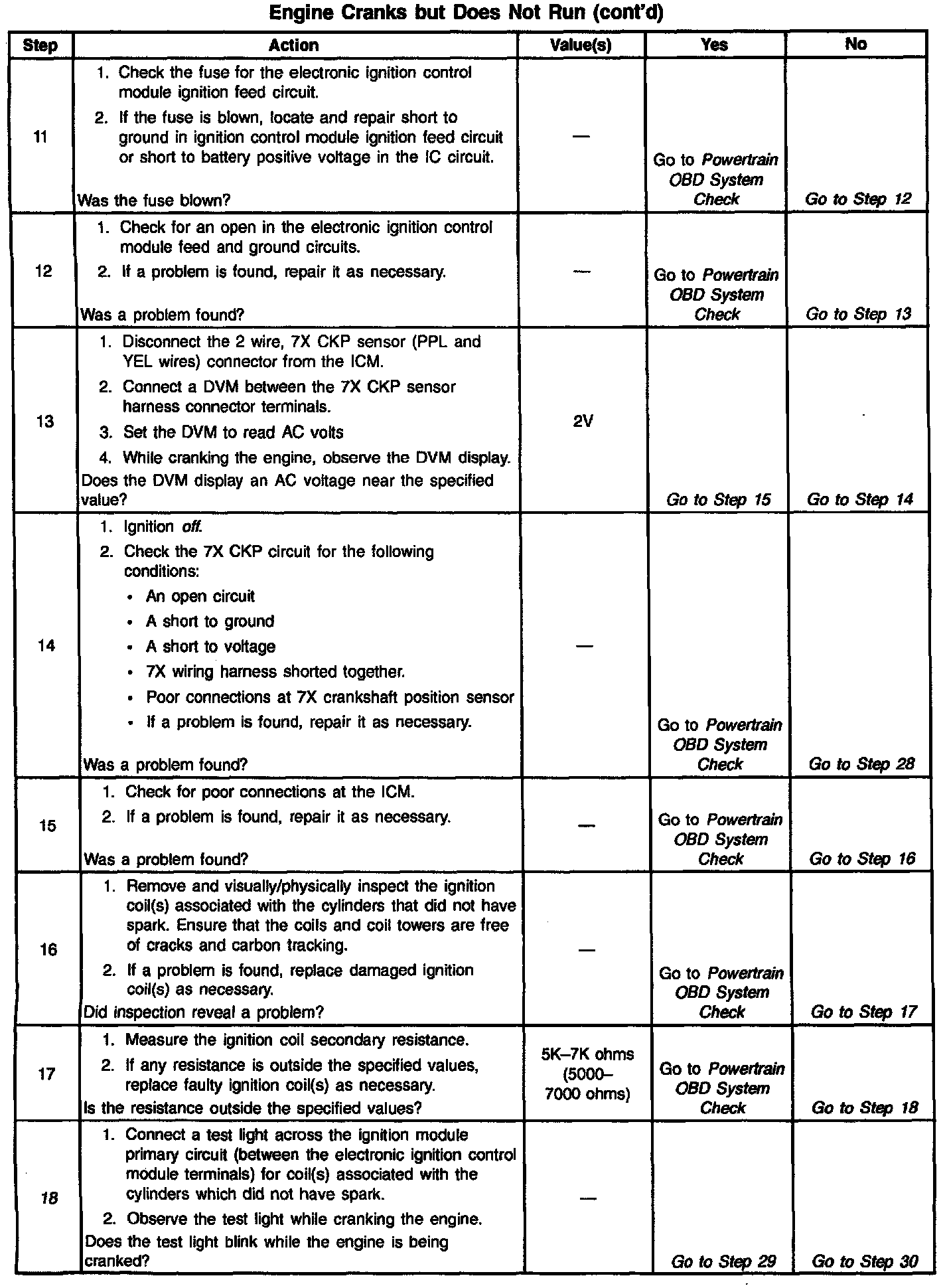 8. Checking for spark at an ignition wire will determine if the problem is with the 7X crankshaft position sensor input to the ICM. A blinking injector test light with no spark suggests a fault condition in the ignition system. By using J 26792 (ST 125) to test for spark at the ignition coil towers, each ignition coils ability to produce at least 25,000 volts is verified.