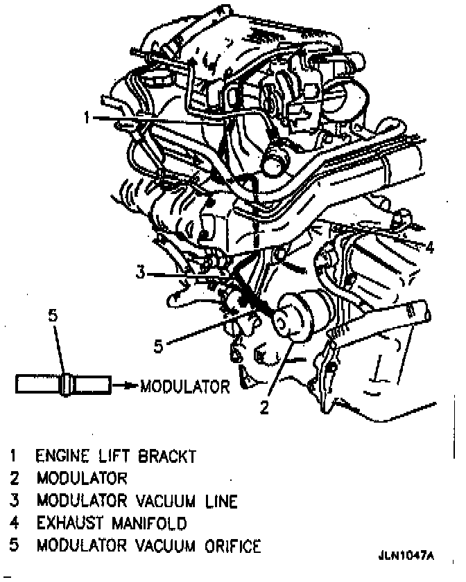 NOTICE: Insure the correct vacuum line is connected to the vacuum modulator on the 2.4L. The correct vacuum line is a short hose from the main harness to the modulator. It DOES NOT have a black and white vacuum check valve in-line with it. Transaxle damage may occur if the incorrect vacuum line is connected.