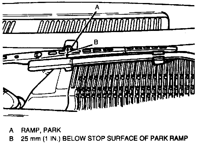 2. Wiper arm assembly (8) 25 mm (1 in.) below stop surface of park ramp.