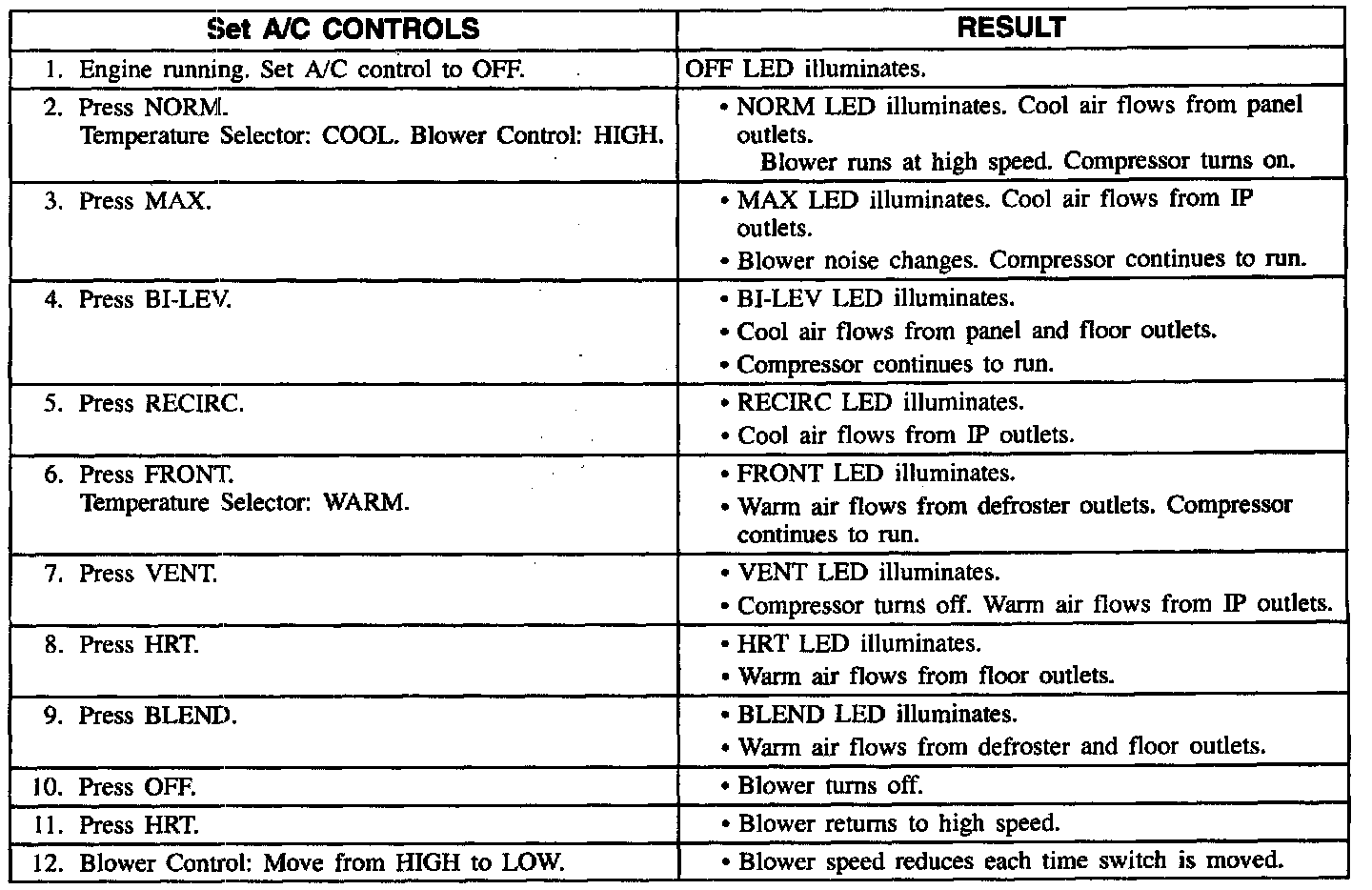 The following procedures check the Manual Air Conditioning System. All the steps in each procedure can be completed without using tools. Detailed diagnostic procedures follow the system check and are referenced in each step.