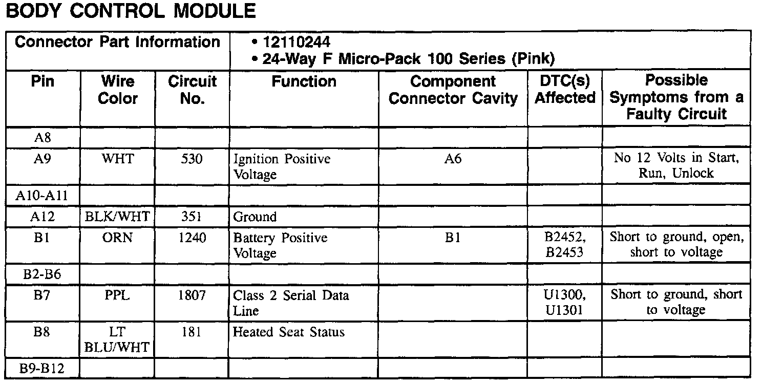 Body Control Module (SBM): C2 (Part 2 Of 2):