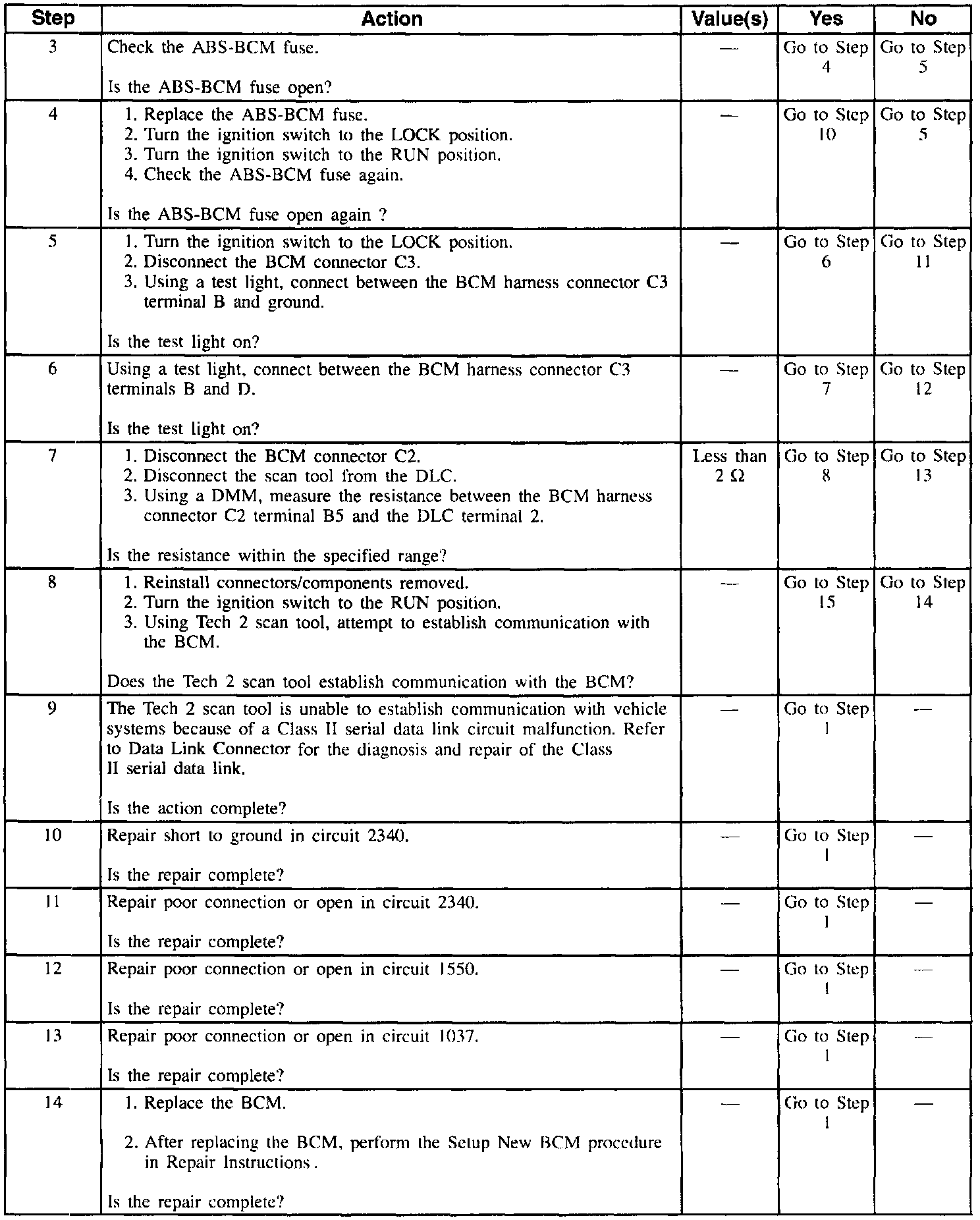 2. Determines whether the Class II serial data link has a circuit malfunction or the BCM is not communicating with the scan tool.