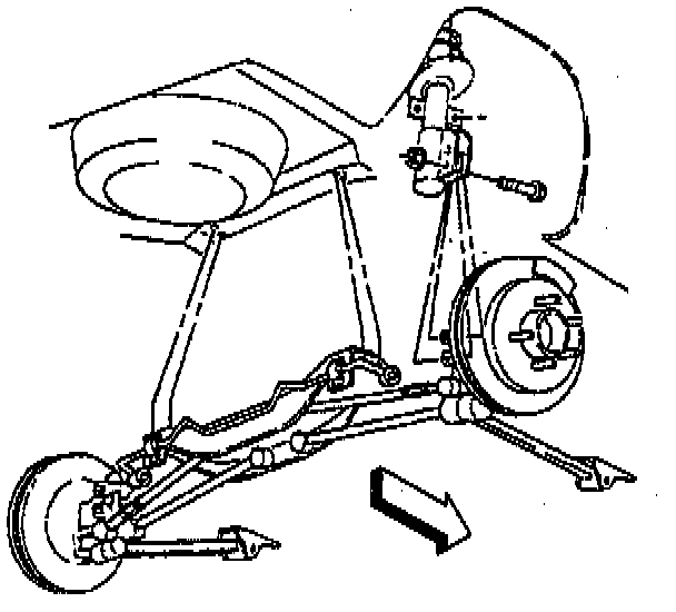 9. Lower the rear suspension support in order to gain access to the rear wheel spindle rod bolts.