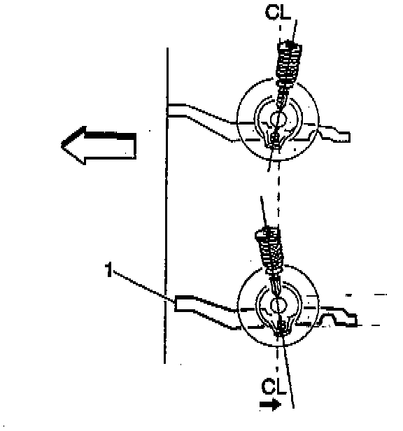Setback applies to both the front and the rear wheels. Setback is the amount that one wheel spindle may be aligned behind the other wheel spindle. In the illustration, the left side frame (1) is moved toward the rear, causing a misalignment. Setback may be the result of a road hazard or a collision. The first clue is a caster difference from side-to-side of more than one degree.