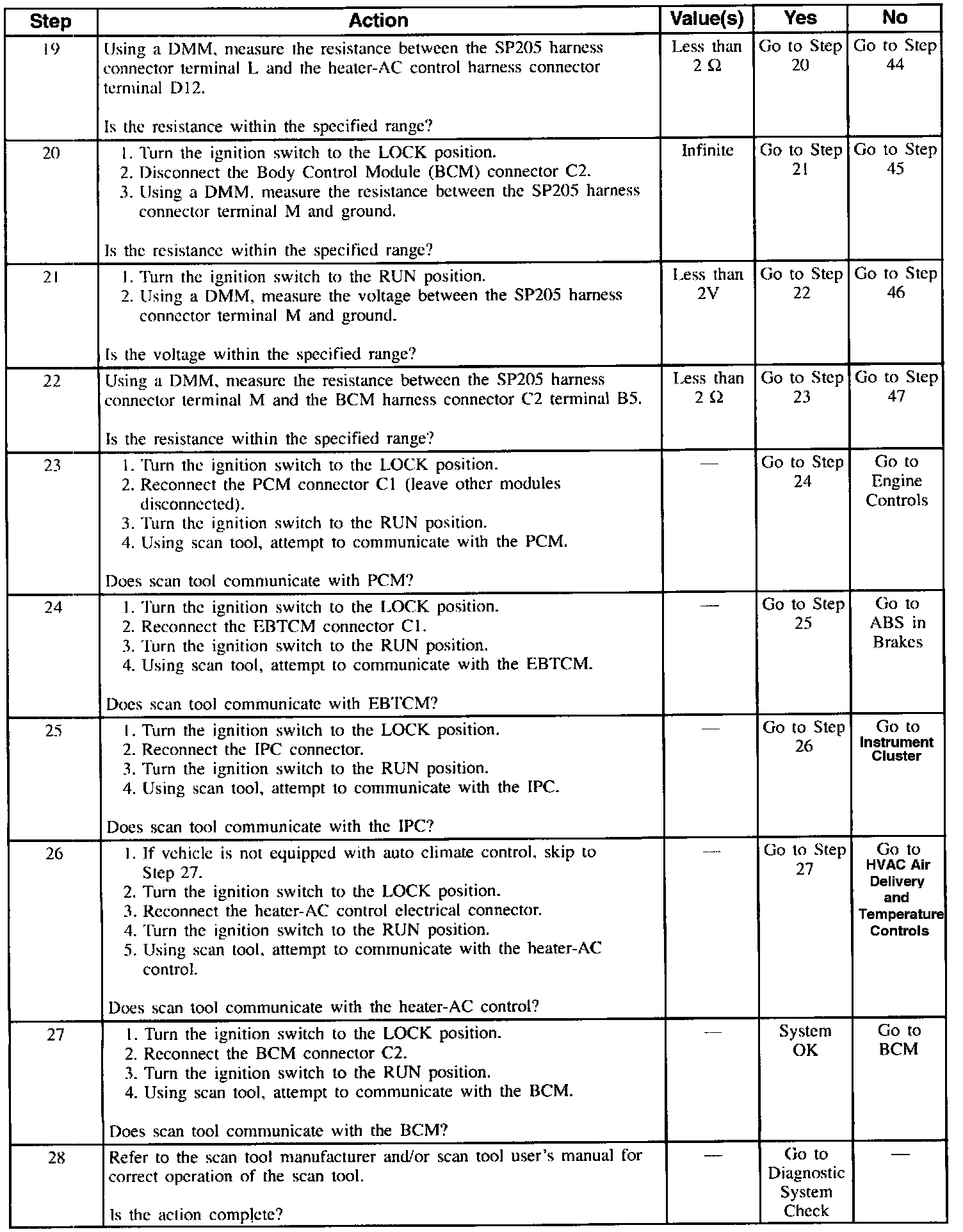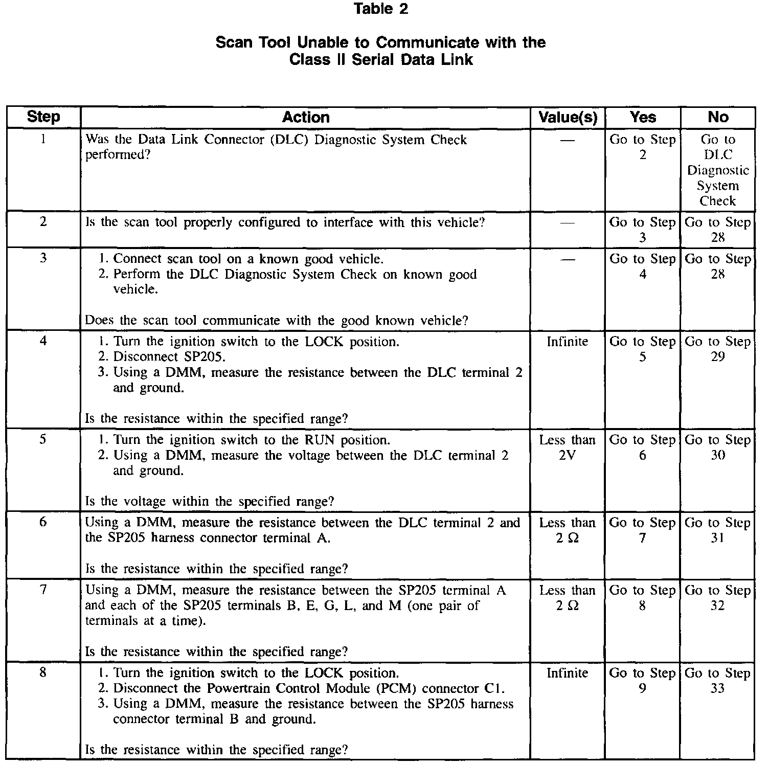 Table 2 Scan Tool Unable To Communicate With The Class II Serial Data Link (Part 5 Of 5):