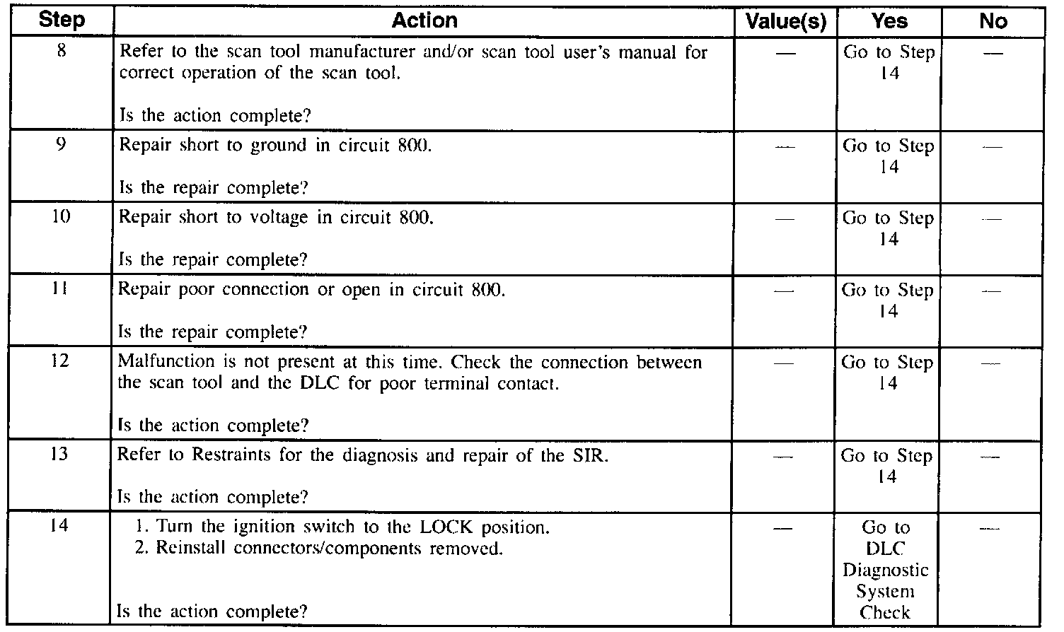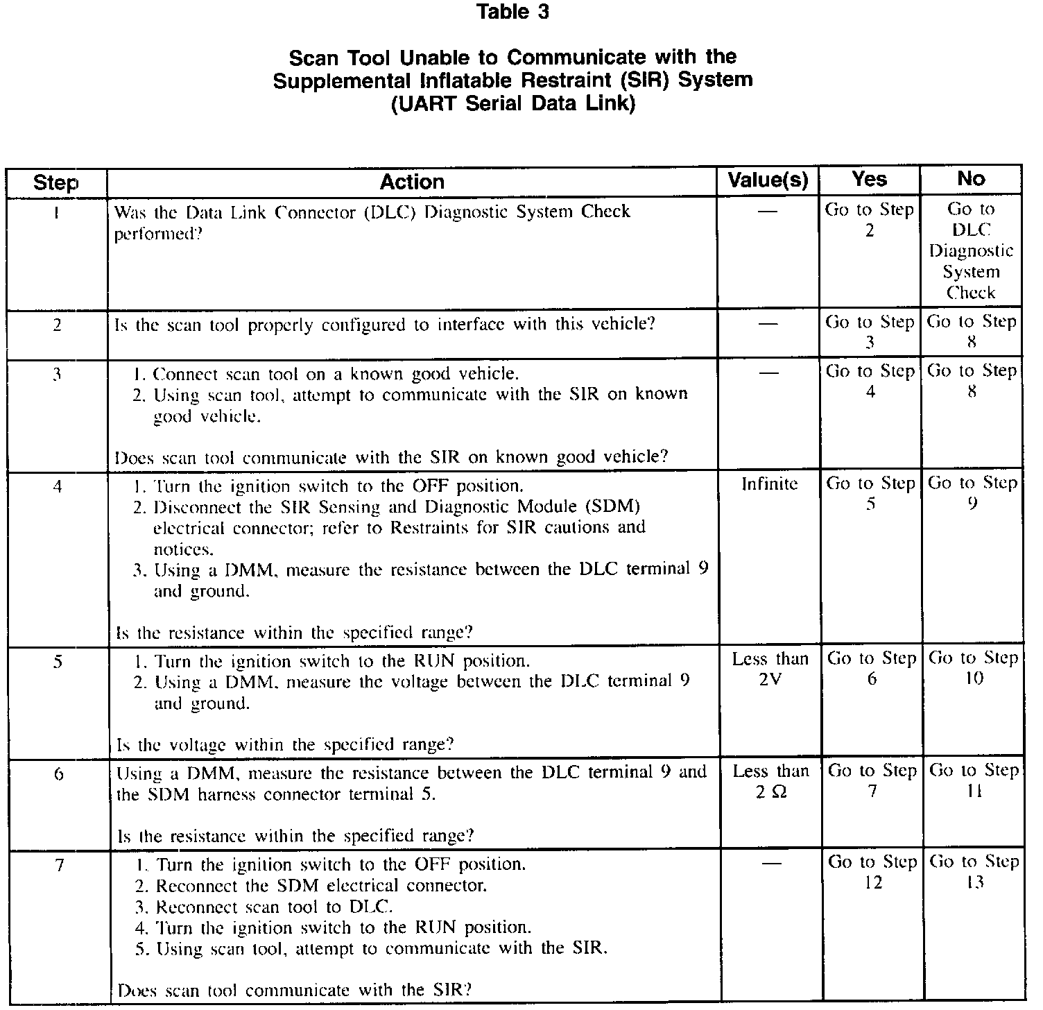 Table 3 Scan Tool Unable To Communicate W/SIR System