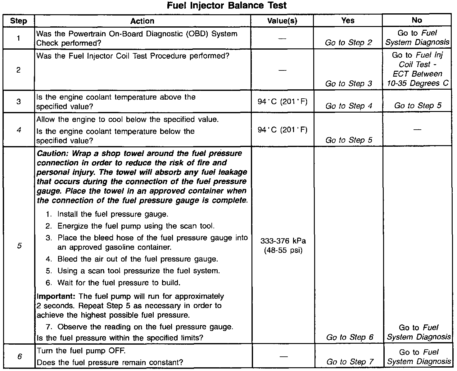 Fuel Injector Balance Test