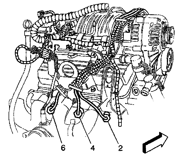 3. Remove the spark plug wires at the rear of the engine using the following steps: