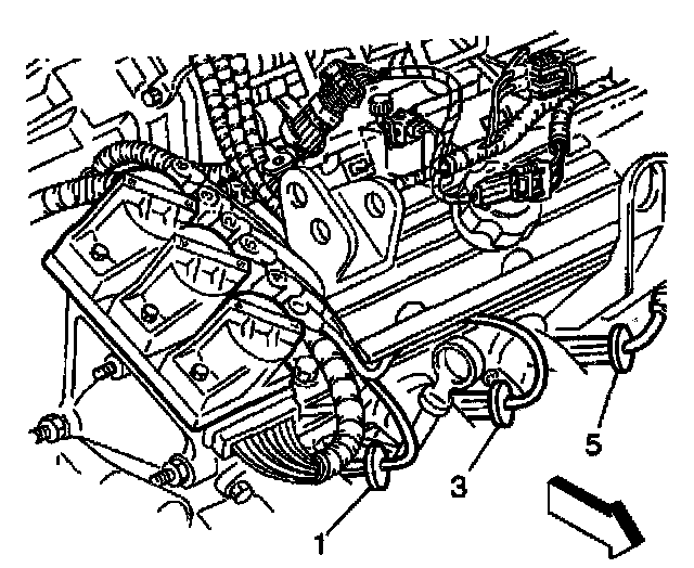4. Remove the spark plug wires (1,3,5) from the spark plugs at the front of the engine using the following steps:
