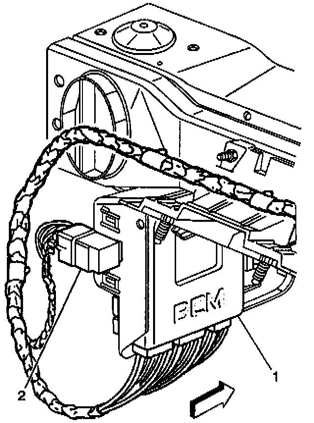 2. Use pressure tabs in order to release the EBCM/EBTCM (1) from the EBCM/EBTCM bracket (2).