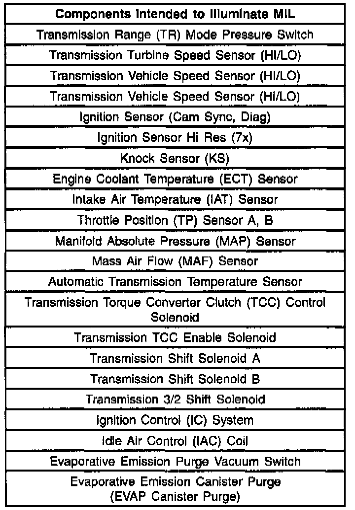California Air Resources Board (CARB) OBD II Comprehensive Component Monitoring List of Components Intended to Illuminate MIL