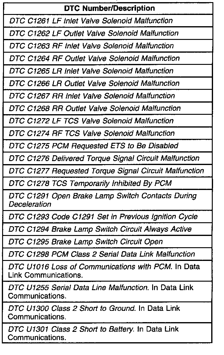 These are the only ABS diagnostic trouble codes for this vehicle additional ABS diagnostic trouble codes obtained with an aftermarket scan tool are not valid ABS trouble codes. Contact the aftermarket scan tool manufacture for additional assistance.
