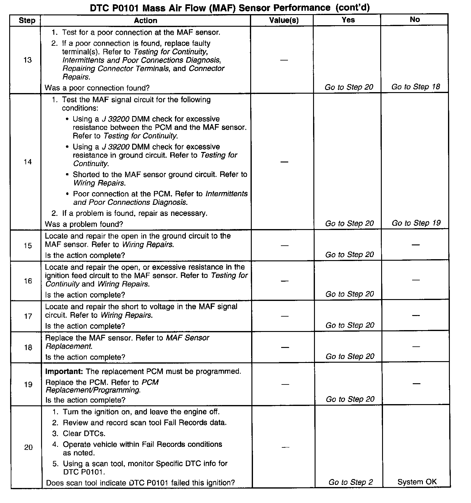 3. Only, if sent here from Engine Cranks But Will Not Run, continue to follow diagnostic table even if DTC P0101 has NOT failed this ignition.
