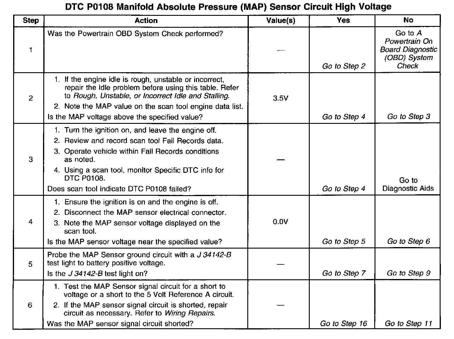 ^ Depending on where the MAP sensor voltage (high voltage or low voltage) is when the engine is started, the high or low voltage MAP sensor DTCs will set.