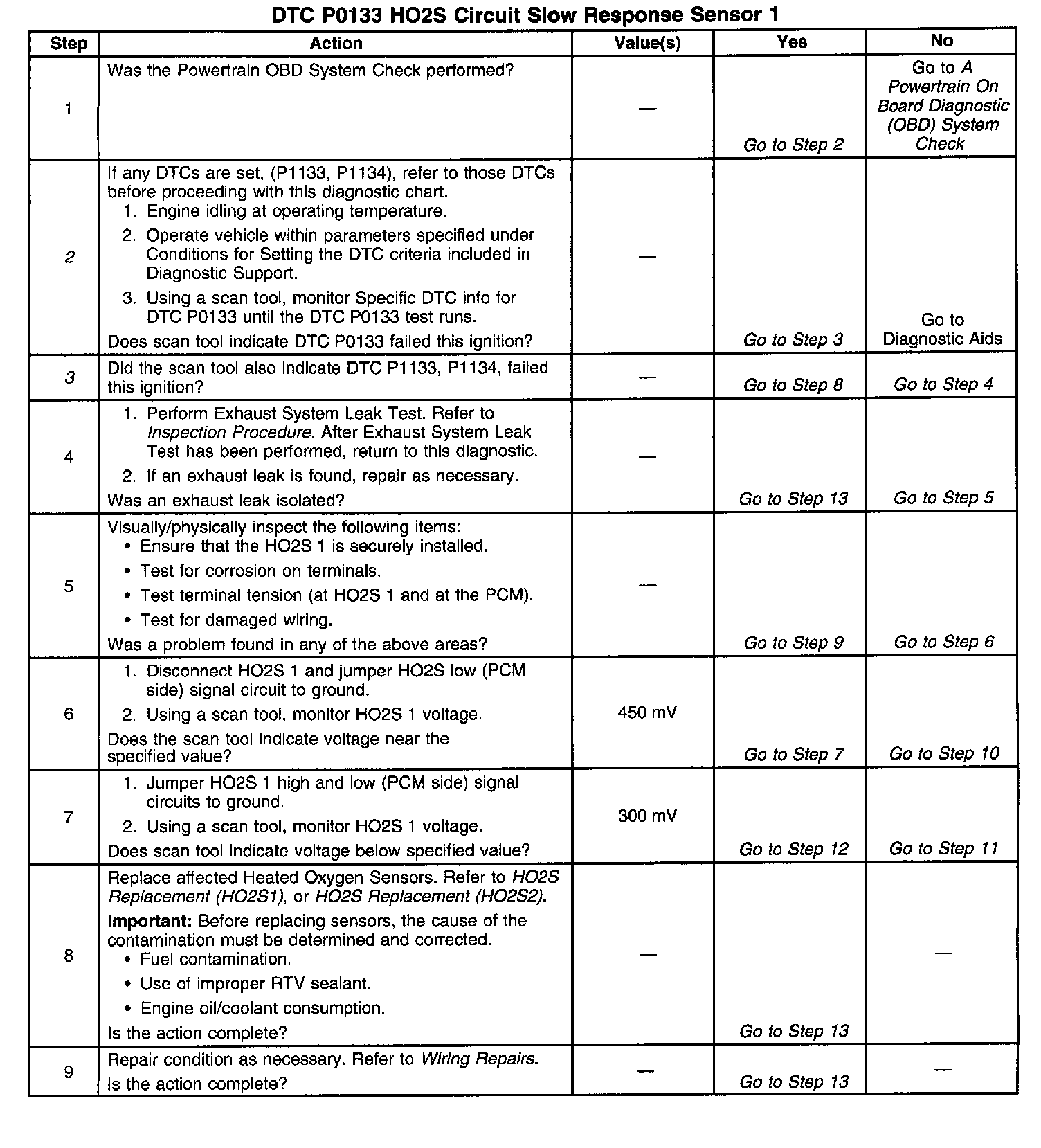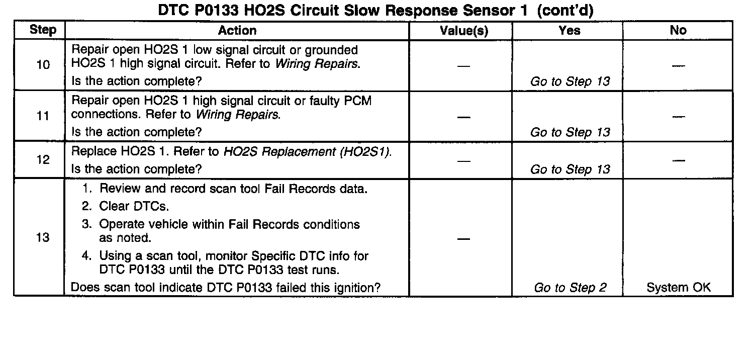 A lean to rich transition is indicated when the HO2S voltage changes from less than 300 mV to greater than 600 mV. A rich to lean transition is indicated when the HO2S voltage changes from more than 600 mV to less than 300 mV. An HO2S that responds too slowly is likely to be faulty and should be replaced.