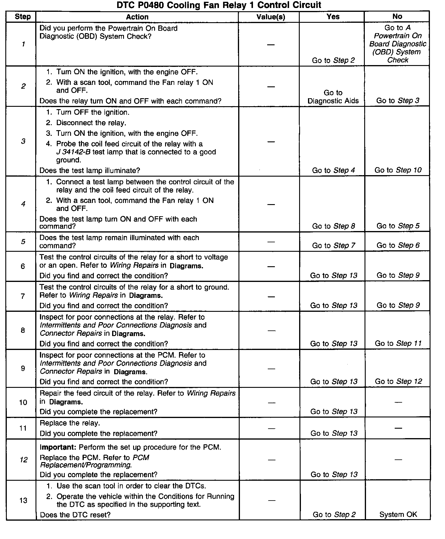 Output Driver Modules (ODMs) are used by the PCM to turn on many of the current-driven devices that are needed to control various engine and Transaxle functions. Each ODM is capable of controlling up to 7 separate outputs by applying ground to the device which the PCM is commanding on. DTC P0480 set indicates an improper voltage level has been detected, which controls the Cool Fan1 Relay.
