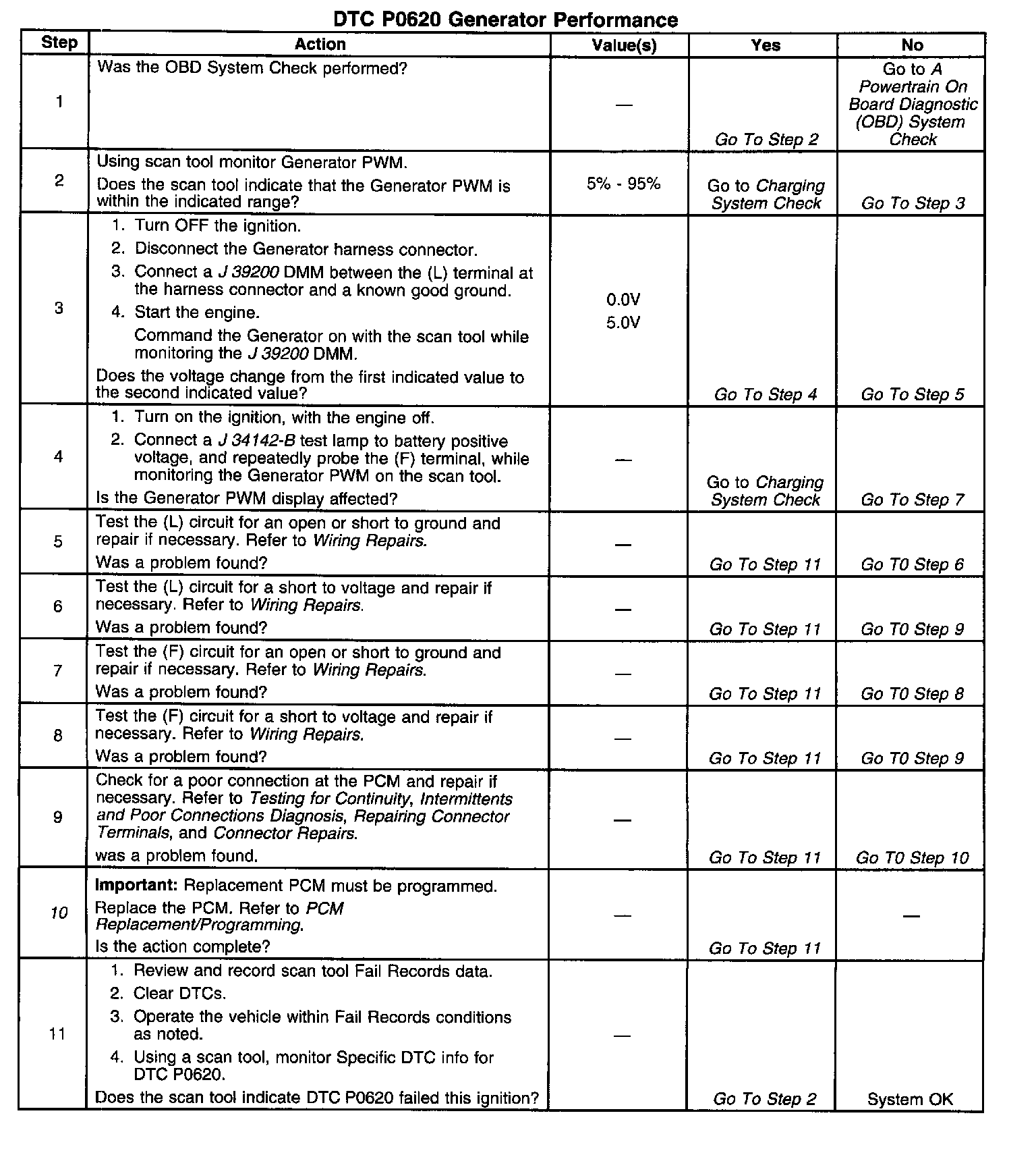 The number(s) below refer to the step number(s) on the diagnostic table: