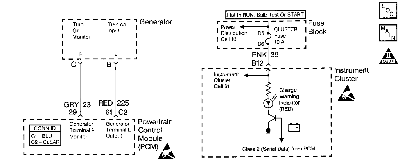 The PCM Input Field (F) terminal from the alternator provides a 400 Hz PWM signal to the PCM. The duty cycle of the F terminal mimics the duty cycle of the field coils in the alternator, Thus, the F terminal duty cycle indicates the relative electrical load on the alternator.