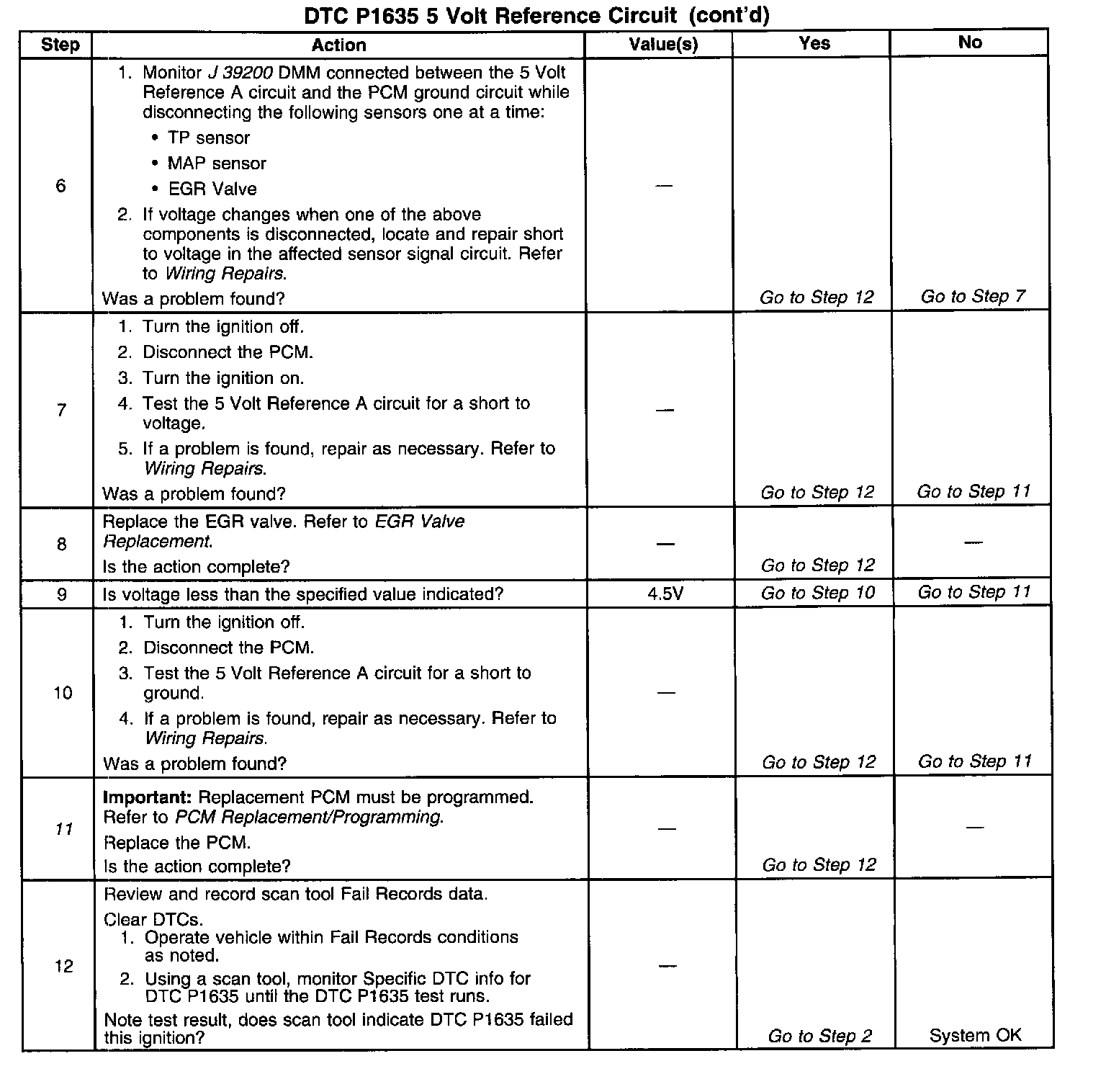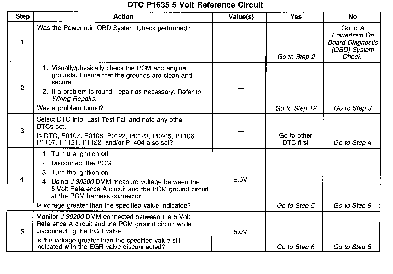 The PCM monitors the voltage on the 5 Volt Reference A circuit. If the voltage is out of tolerance, the PCM will set DTC P1635.