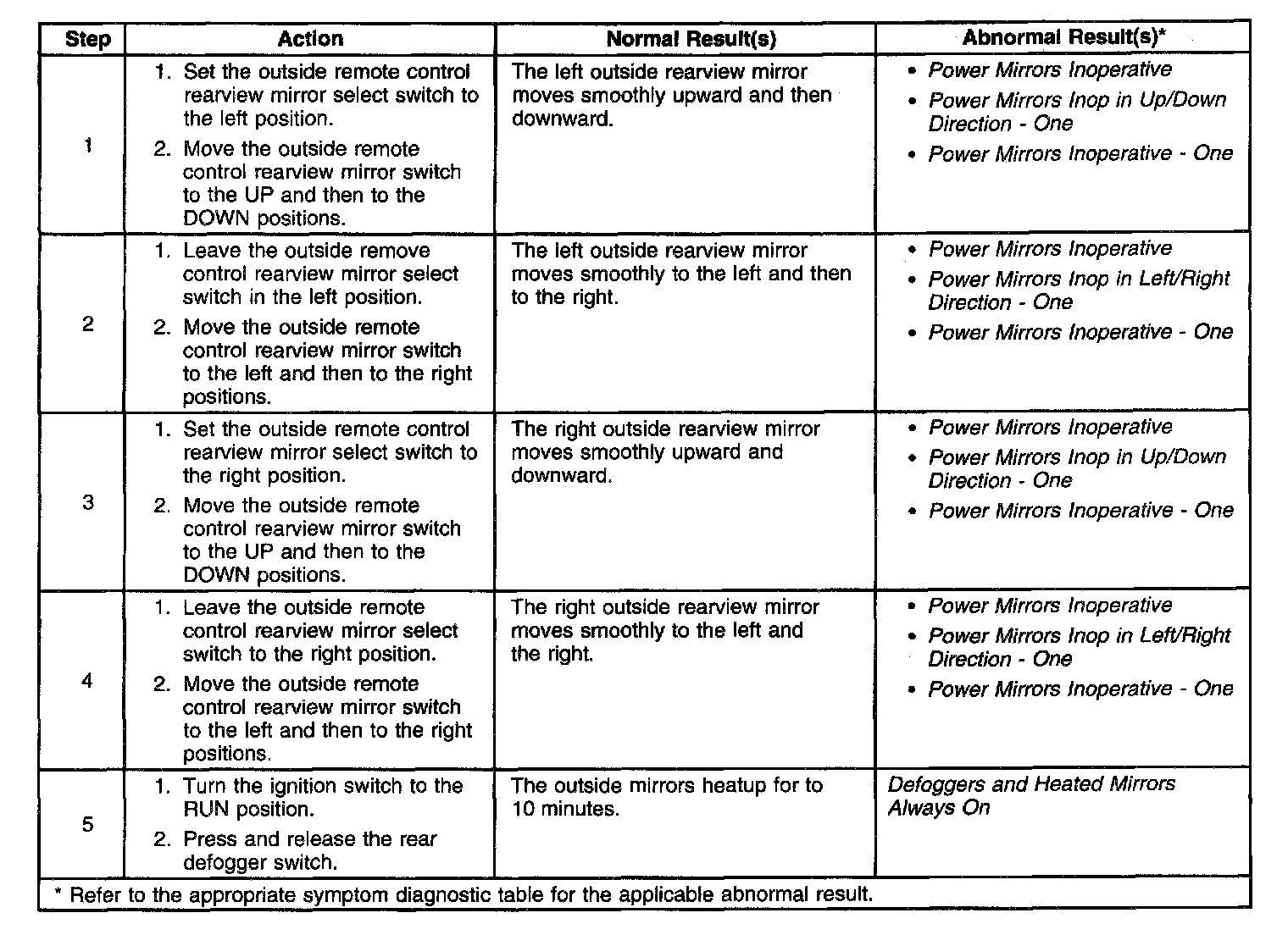 Outside Mirrors System Check: