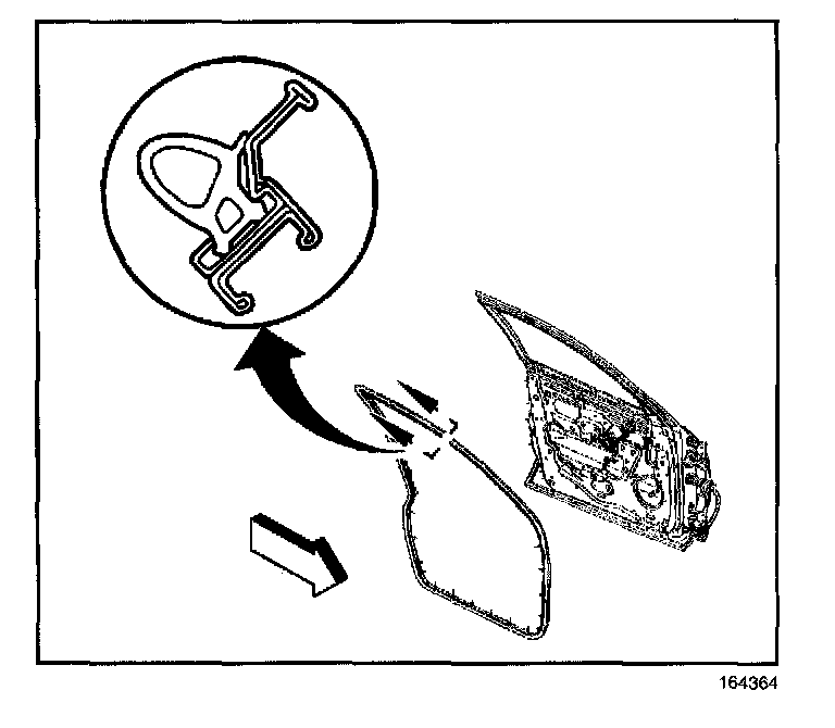 2. Press the upper half of the front door weatherstrip pushing the weatherstrip into the track.