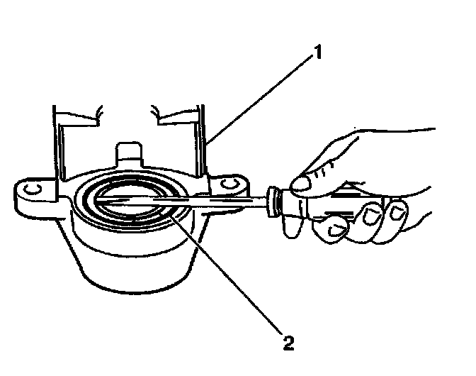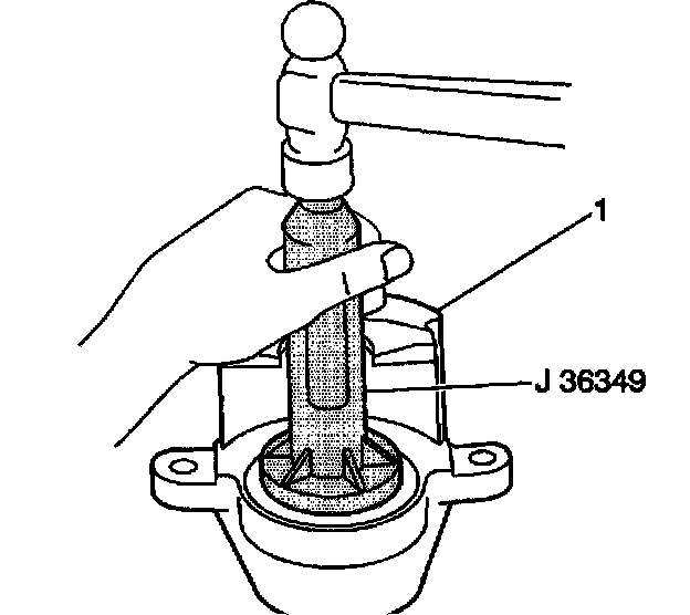 6. Seat the caliper boot in the caliper housing (1) counterbore using J 36349.