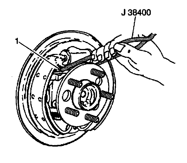 11.2. Use the J 38400 in order to spread the brake shoes while working the adjuster actuator (1) into position.