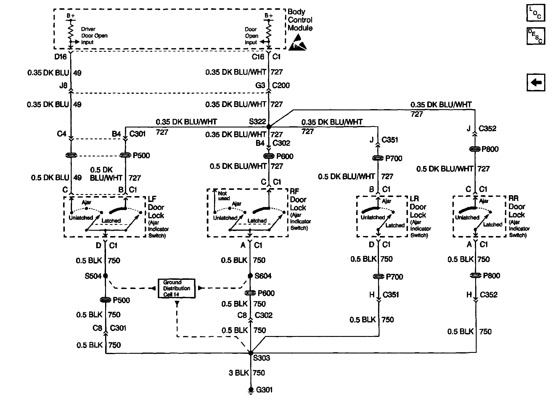 Retained Accessory Power (RAP) Schematics: Door Locks, Grounds:
