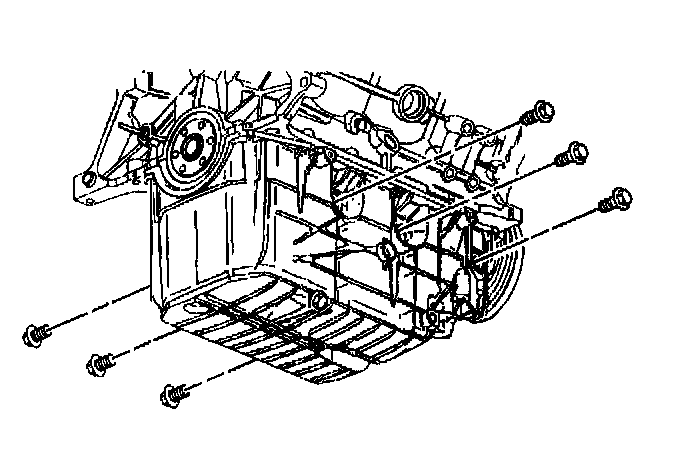 15. Remove the right (rear) oil pan side bolts. Use the J 39505.