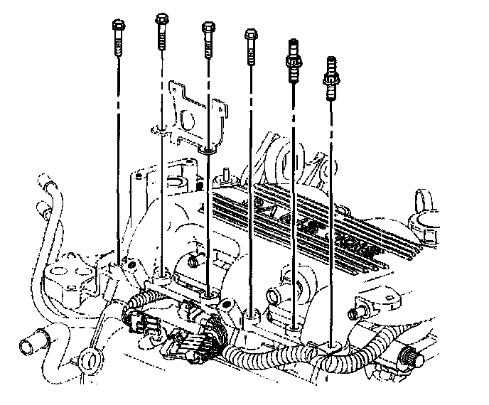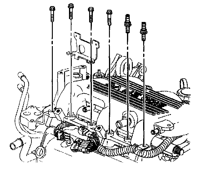 6. Install the upper intake manifold bolts and studs.