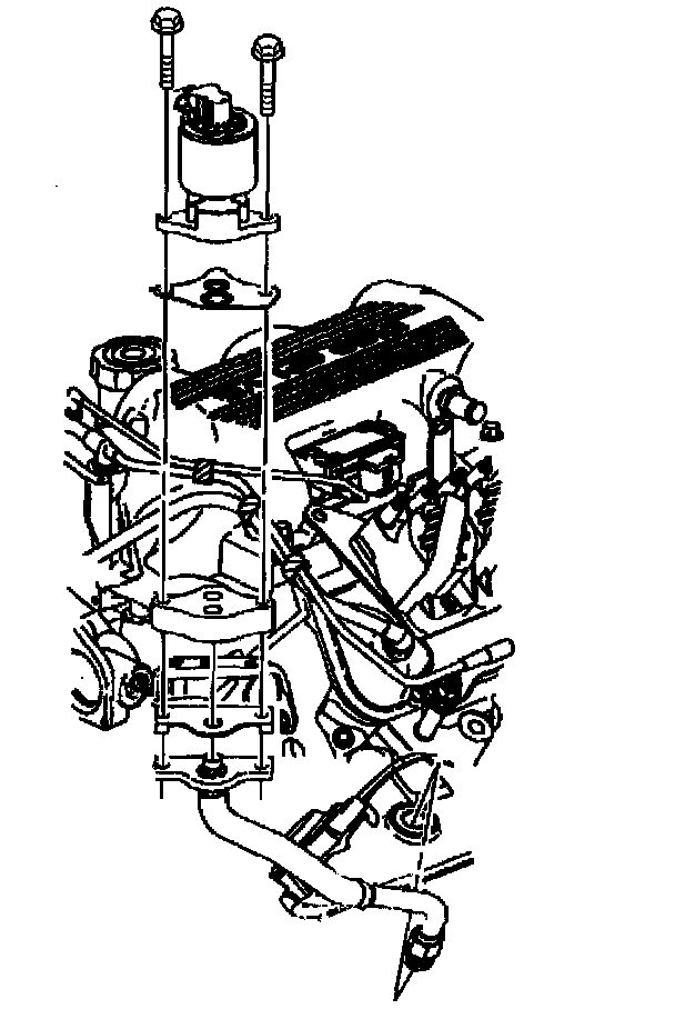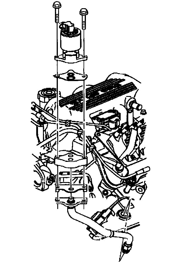 11. Remove the ignition coil bracket with the coils, the purge solenoid and the vacuum canister solenoid. Refer to Ignition Control Module Replacement and EVAP Canister Purge Valve Replacement in Powertrain Management.