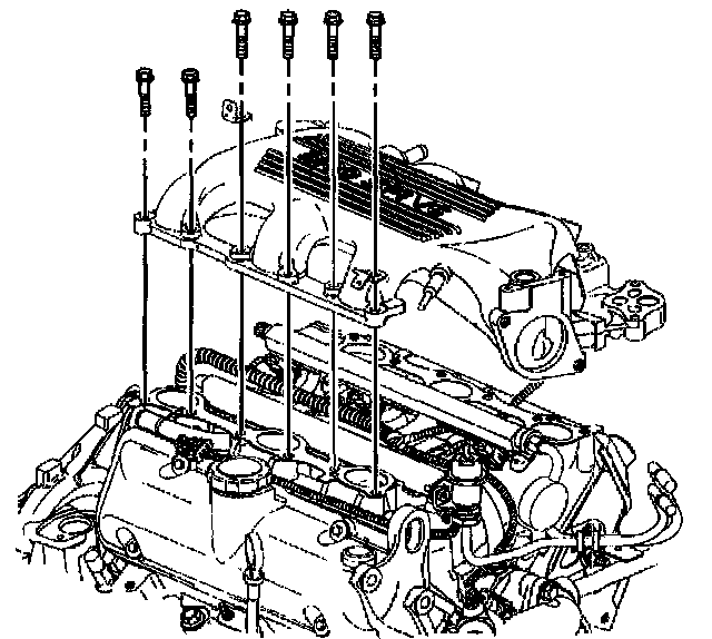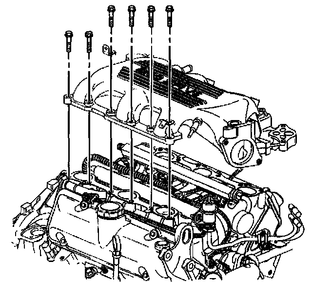 Tighten the upper intake manifold bolts and studs to 25 Nm (18 ft. lbs.).