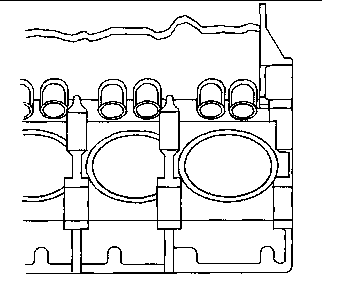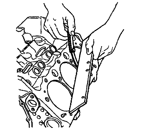9. Use a straight edge and a feeler gauge in order to test the deck surface for flatness. Carefully machine minor irregularities. Replace the block if more than 0.25 mm (0.010 inch) must be removed.