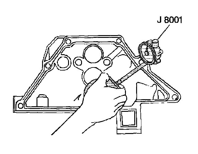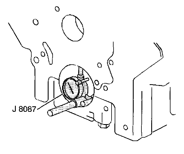 12.2. Hold the J 8001 gauge plate flat against the crankshaft flange.