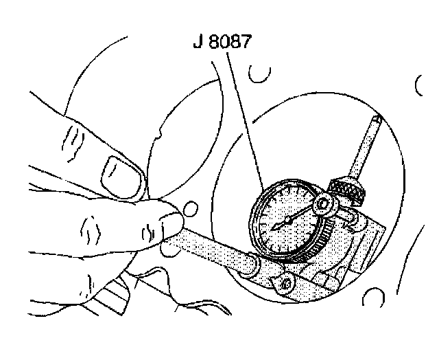 13. Inspect the crankshaft main bearing bores. Use the J 8087 in order to measure the bearing bore concentricity and alignment at the following locations:
