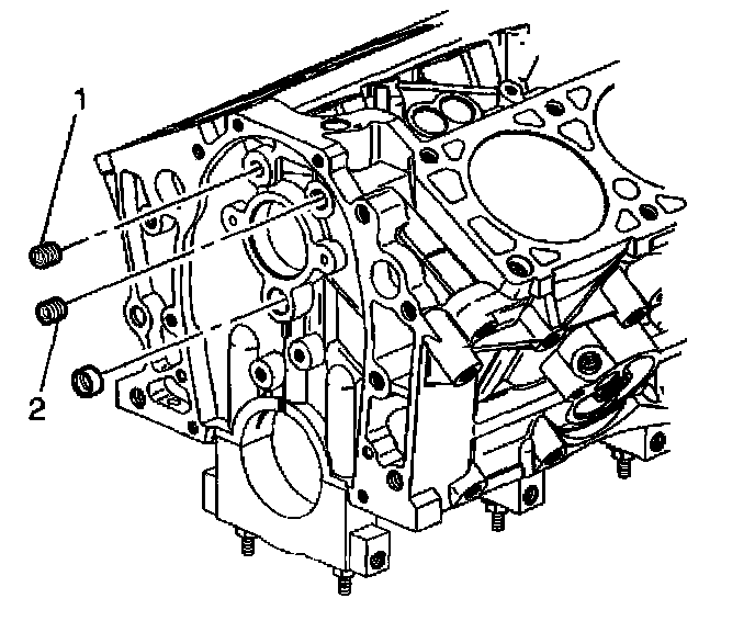 13. Install the front 1/8 inch oil gallery plugs (1,2).