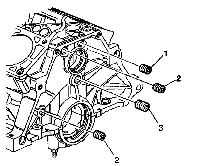15. Install the 1/4 inch rear oil gallery plugs (1,2,3).