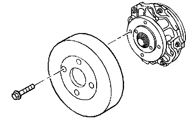 4. Install the water pump pulley. Loosely install the mounting bolts.
