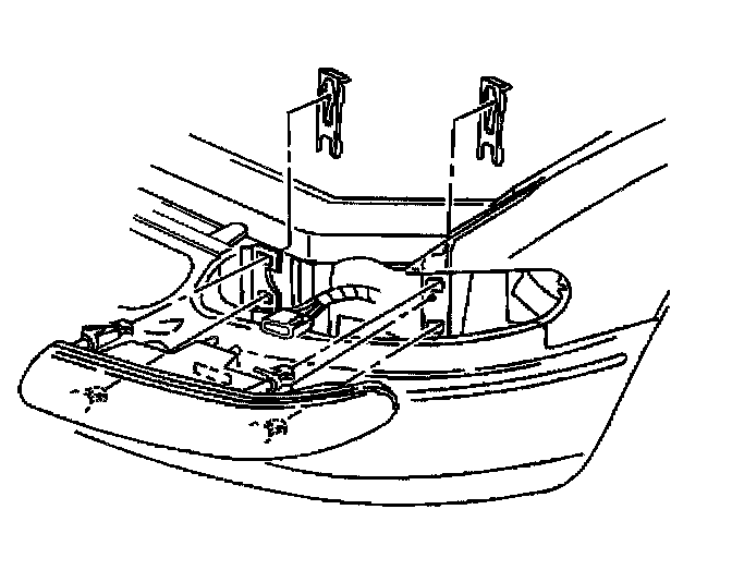 4. Carefully remove the headlamp assembly mounting tabs from the slots in the upper fascia support and the fender reinforcement.