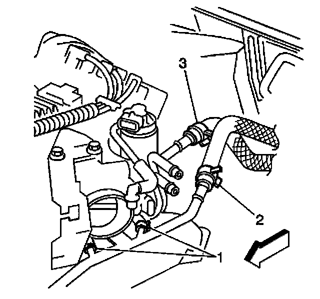 4. Use J 38185 in order to position aside the heater hose inlet clamp.
