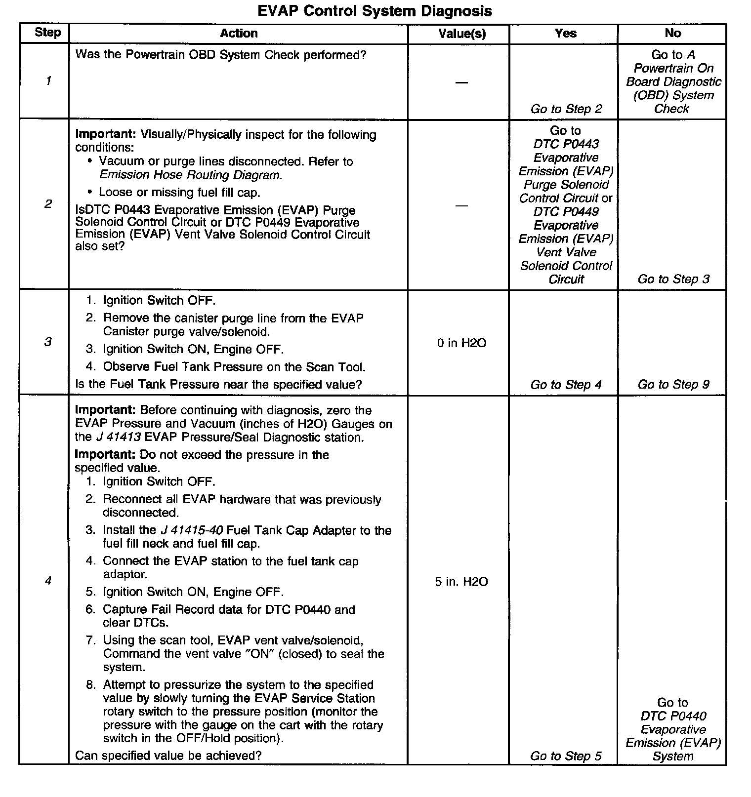 5. Verifies that the fuel tank pressure sensor accurately reacts to EVAP system pressure changes. The [1][2]EVAP station is pressurizing a sensor that normally reads vacuum. The tech II reads high pressure at 0 volts and high vacuum at 5 volts. the Tech II can only read a max pressure of 6.0 inches of H2O (0 Volts). However the EVAP Service station can pressurize the system to much higher pressures. The Scan Tool value should be within 0.5 of the specified value.