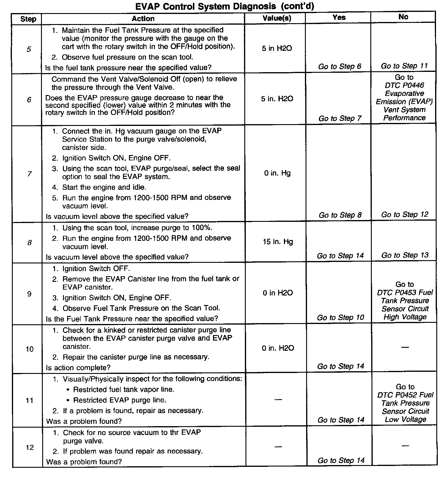 7. Checks for a leaking or stuck open EVAP canister purge valve/solenoid, The scan tool should read within 1.0 in. HG of the specified value.