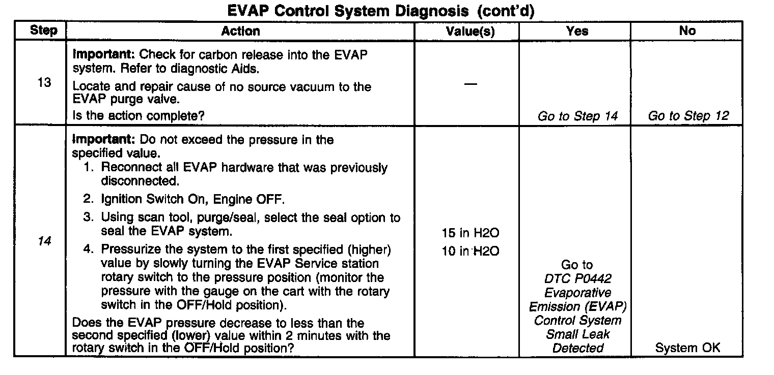 14. Checks for a small leak in the EVAP system.