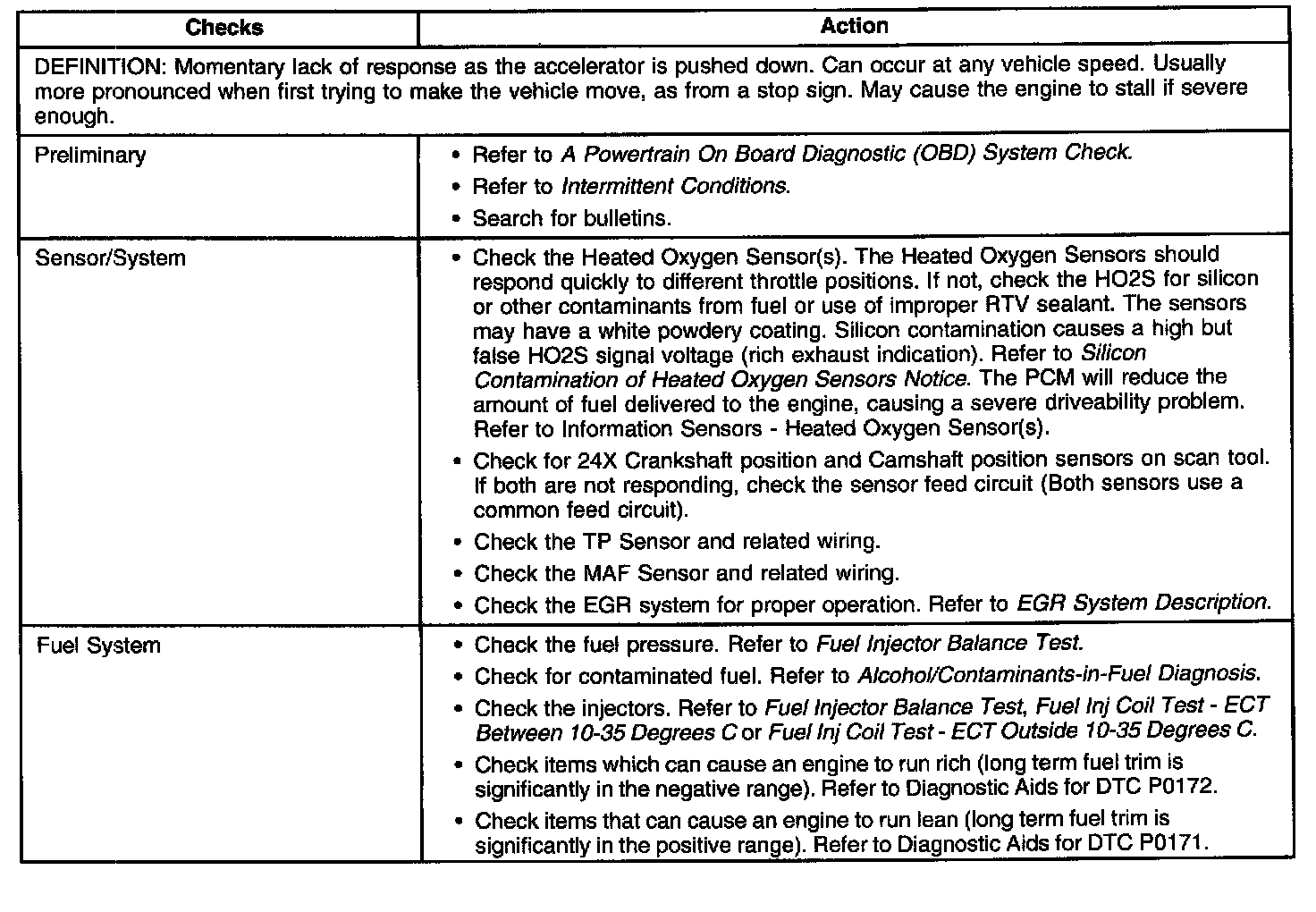 Hesitation, Sag or Stumble
