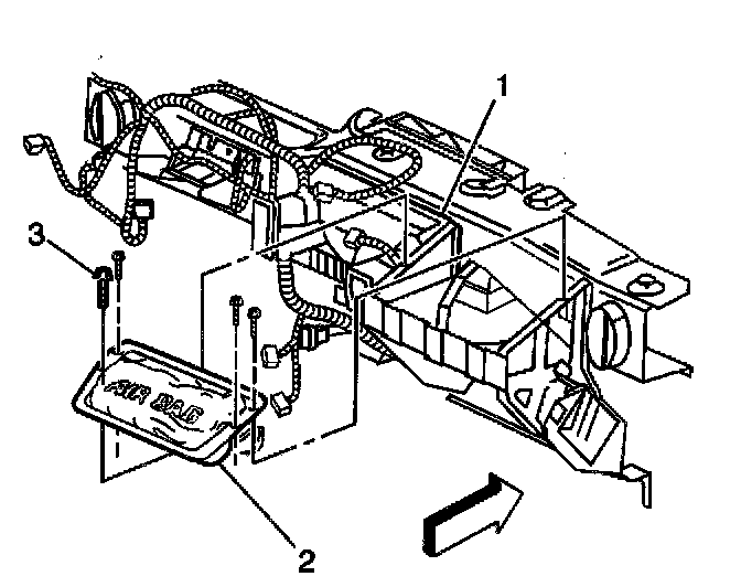 3. Remove the Inflatable Restraint Instrument Panel (IP) module mounting fasteners (3).