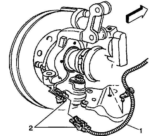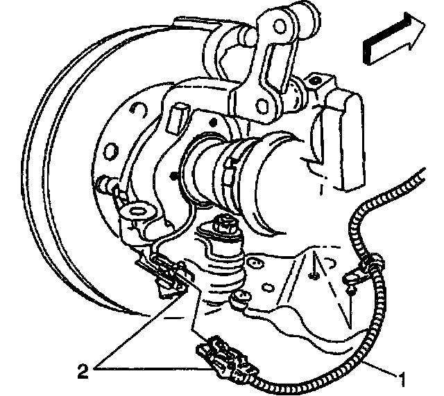 4. Disconnect the ABS wheel speed sensor connector (2).